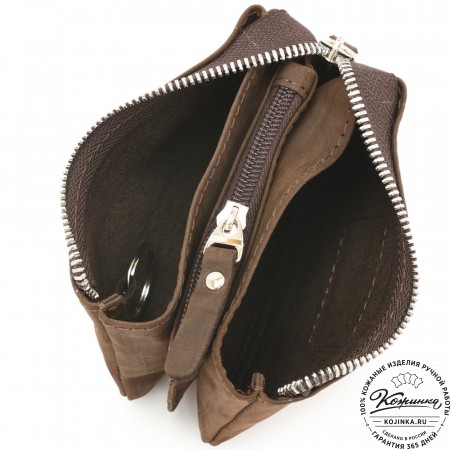 Кожаный кошелек "Солярис" – компактная модель с двумя отделениями для купюр, ключей и небольшим карманом на молнии для хранения мелочи.
