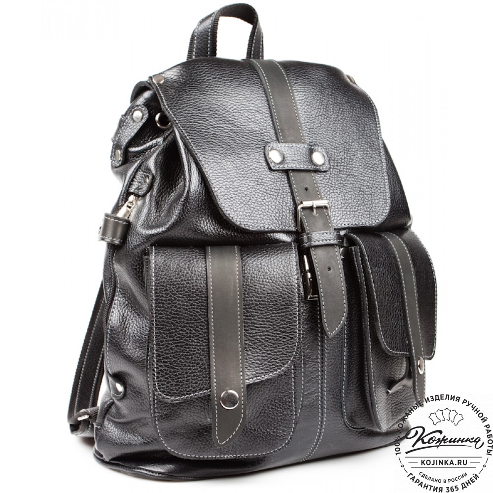 Кожаный рюкзак ручной работы "Эверест" (черный) - классический рюкзак из мягкой кожи с подкладкой из полиэстра.