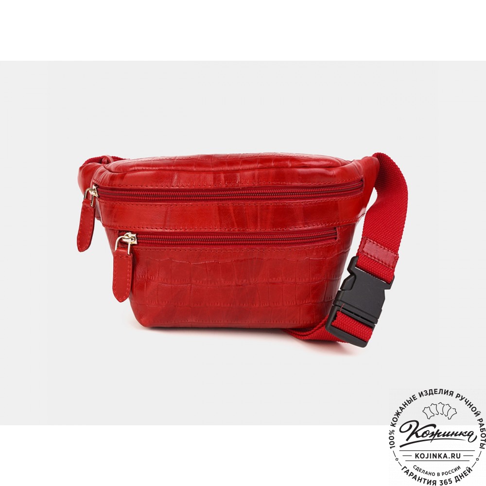 Кожаная сумка на пояс "Бритни" (красный крокодил) – аксессуар для тех, кто ведет активный образ жизни!
