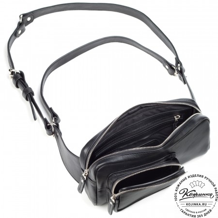 Лямка из кожи, усилена стропой, регулируется по длине.