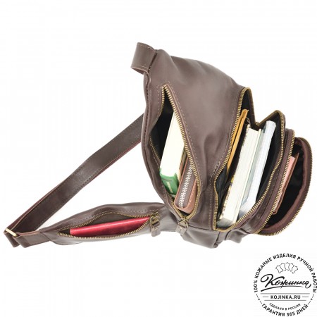 Кожаная нагрудная сумка "Стивен" (тёмно-коричневая) - это уникальная модель 2 в 1, которую можно носить и как нагрудную сумку, и как сумку-планшет. Идеально подойдёт мужчинам, которые любят, чтобы их руки оставались свободными!