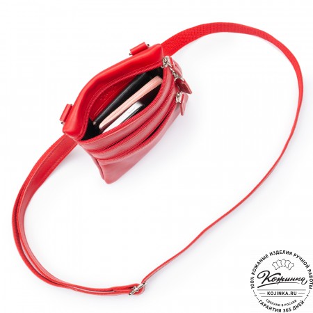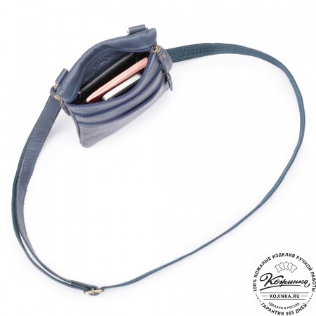 Плечевой ремень выполнен из кожи и усилен стропой для прочности. Ремень съемный, крепится на металлические карабины, удобно регулируется по длине.