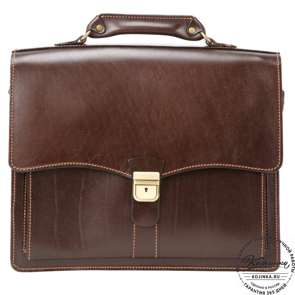 Кожаный портфель "Карьерист" - классический портфель из толстой кожи. Вместительный - для ноутбука 15"!