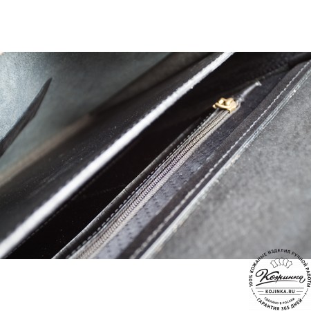 Внутри портфеля три отделения. Среднее из них закрывается на молнию.
