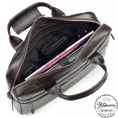 Портфель изготовлен из высококачественной натуральной кожи и прочной фурнитуры.