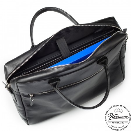Кожаный портфель "Сталкер" (черный) – вместительный деловой портфель из прочной натуральной кожи.