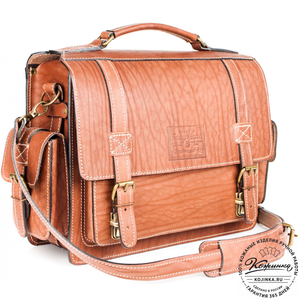 Портфель из 100% натуральной толстой кожи, закрывается на классические замки.