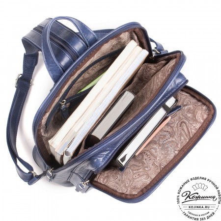 У рюкзака большая удобная ручка и регулируемые по длине кожаные лямки.