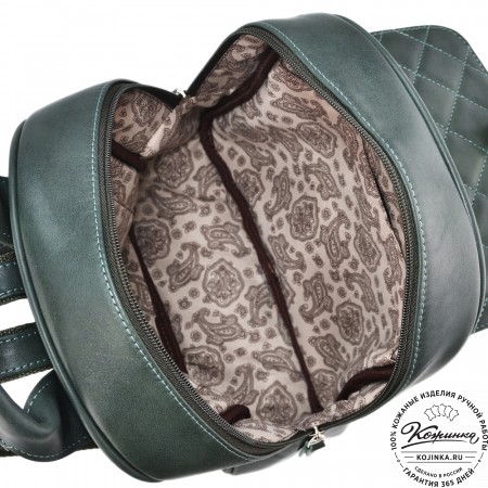 Рюкзак выглядит компактно, но при этом он достаточно вместительный. Внутри одно просторное отделение и карман на молнии для ценных вещей. Подкладка выполнена из прочной ткани с красивым узором.