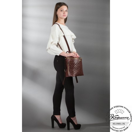 На моделях представлены рюкзаки "Гейша" белого и коричневого цветов.
