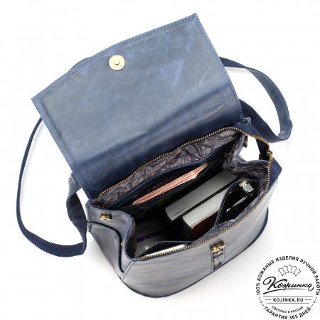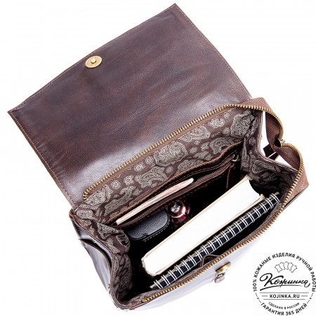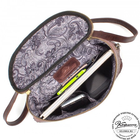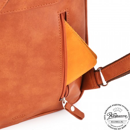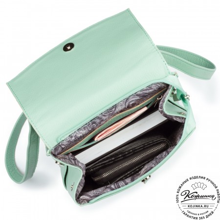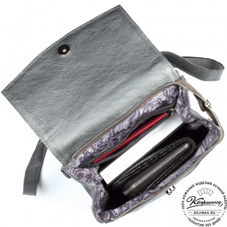 Внутри одно вместительное отделение, кармашки под телефон и мелкие вещи внутри. Интересная застёжка верхнего клапана - простая и удобная на деле подчеркнёт вашу индивидуальность! Снаружи удобный карман на задней стороне.