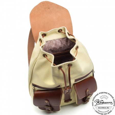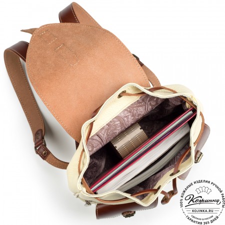 Женский кожаный рюкзак "Гейша" (коричневый) - восточные мотивы в мельчайших деталях!