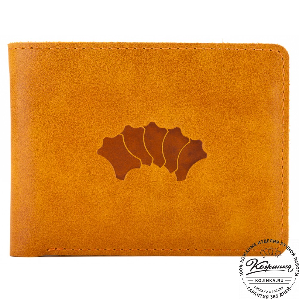 Кожаное портмоне Рим (желтое) - отличный вариант небольшого бумажника с отделениями для карт и для мелочи.