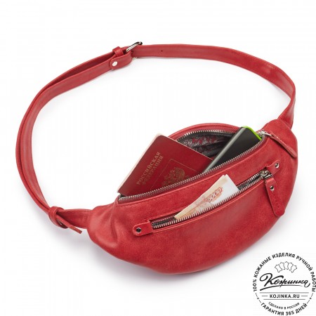 Кожаная сумка на пояс "Юнис" (тёмно-коричневая) - удобная набедренная сумка из качественной натуральной кожи для тех, кто не любит носить сумки в руках.