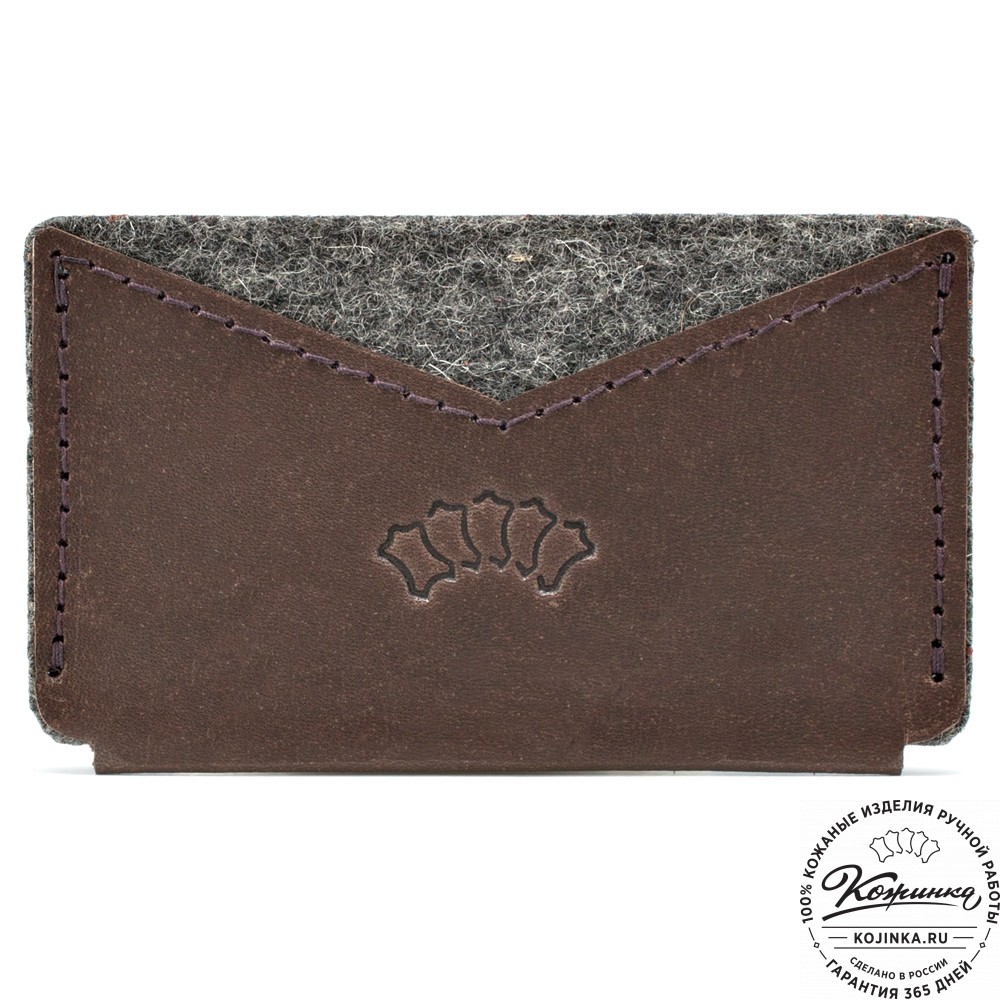 Держатель для пластиковых и банковских карт "Эрик" (коричневый) – компактный кардхолдер из натуральной кожи и войлока.