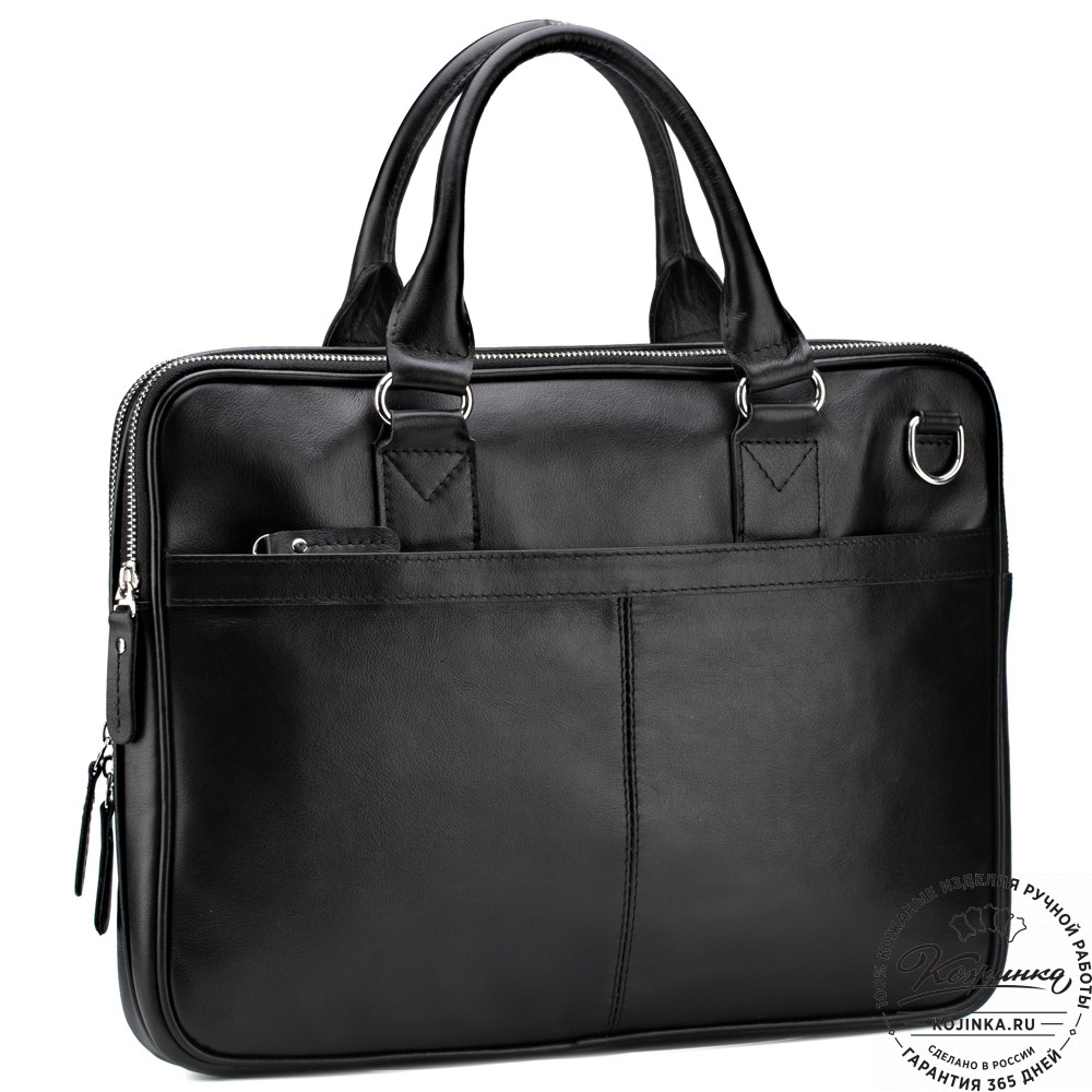 Кожаная деловая сумка "Кларк" (чёрная) – удобная деловая сумка для ноутбука и документов, стильная и практичная модель на каждый день.