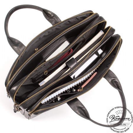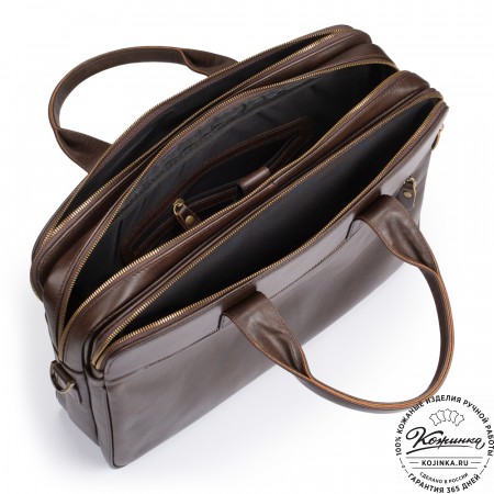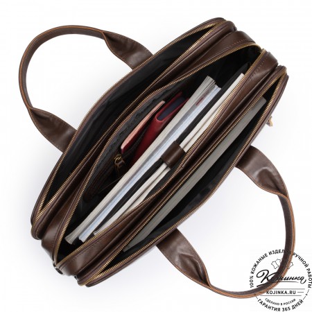 Кожаная сумка "Гофман" (коричневая) – удобная, практичная, стильная деловая сумка из натуральной кожи. Вместительная модель с секцией для ноутбука и удобными карманами внутри и снаружи.
