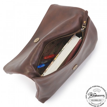 Сумочка изготовлена из прочной толстой кожи, благодаря чему держит форму.