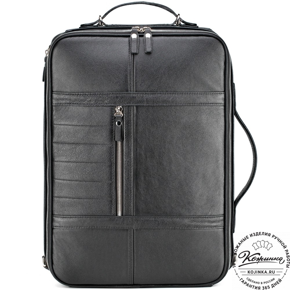 Кожаный рюкзак-сумка "Лесснер" (черный) – практичная многофункциональная модель-трансформер, городской рюкзак и деловая сумка в одном изделии!