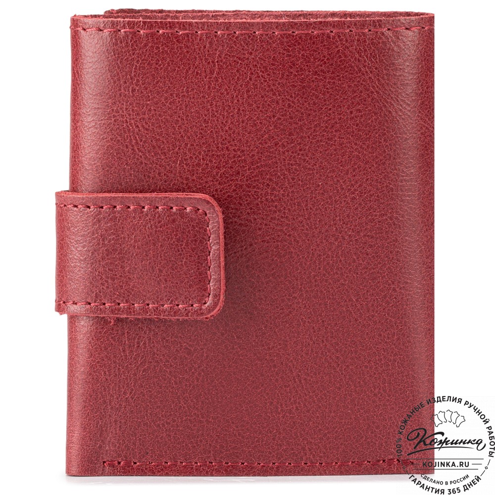 Этот купюрник в три сложения закрывается на хлястик с кнопкой. Внутри располагаются: откидное отделение для купюр и три кармана для карт.