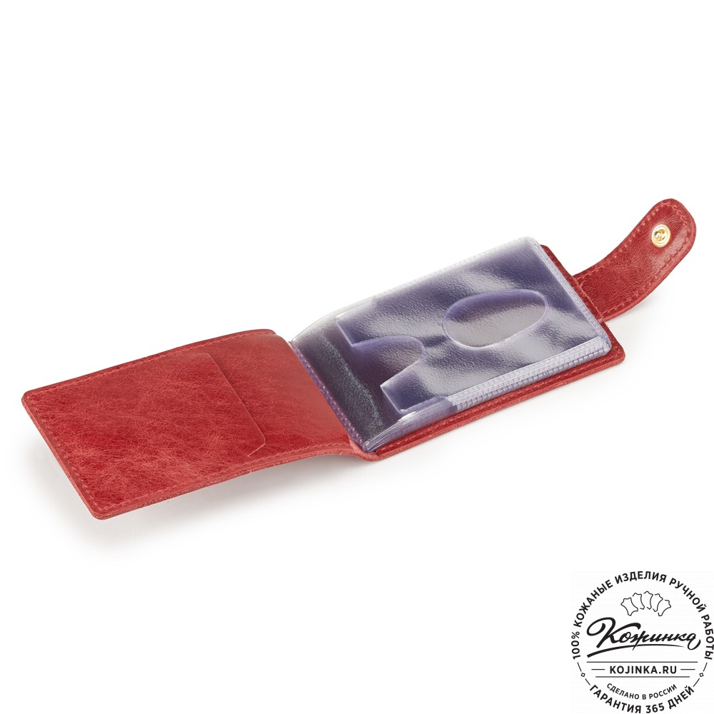 Кожаная визитница Одесса (красная) - и все скидочные карты на месте!