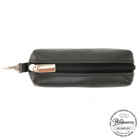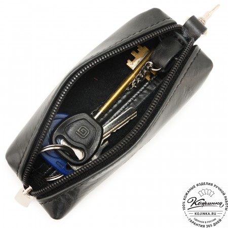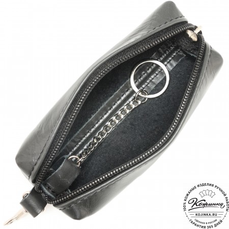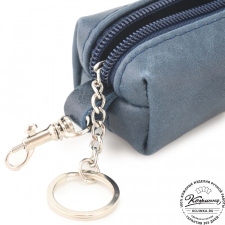 Закрывается ключница на молнию, внутри большое металлическое кольцо для ключей.