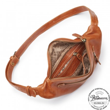 Кожаная сумка на пояс "Рики" (красная) – стильная и удобная набедренная сумочка из мягкой натуральной кожи.