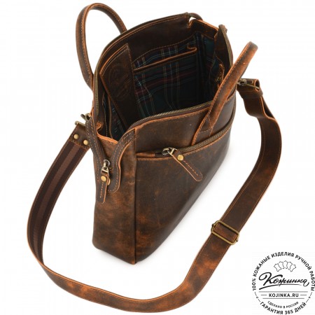 Кожаная сумка "Доминик" - удобная деловая сумка с функциональностью портфеля. Выглядит солидно и внушительно, но менее официально, чем портфель.